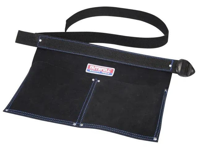 This Faithfull Double Pocket Nail Pouch is made of durable suede material and features a webbing belt and two separate pockets for your convenience. It boasts double stitching for added strength and is reinforced with rivets at stress points.