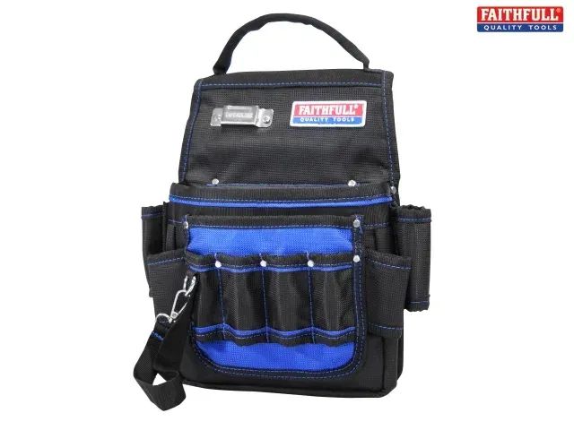 This Faithfull Electricians Tool Pouch is made from durable 2100 denier nylon. It has two pockets, 14 tool slots, a fabric tool loop and a measuring tape clip. Riveted at stress points to increase strength. The belt loop is compatible with all Faithfull belts.