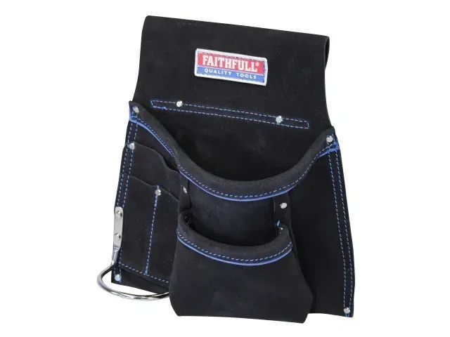 This Faithfull Single Tool & Nail Pouch is manufactured from high-quality suede. With double stitching and reinforced rivets at pressure points for added durability. It has 2 large pockets, 3 small pockets and a hammer loop, it provides ample room for nails and hand tools.