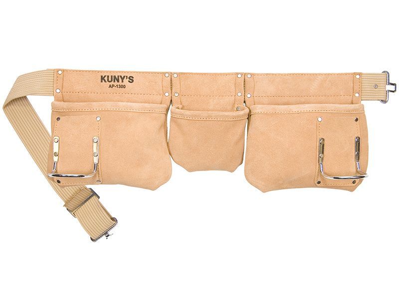 Kuny's Carpenter's Apron made from heavy-duty suede leather with a 50mm/2in wide heavy-duty nylon web belt with metal twist-lock buckle, metal hammer loops and reinforced at all stress points.