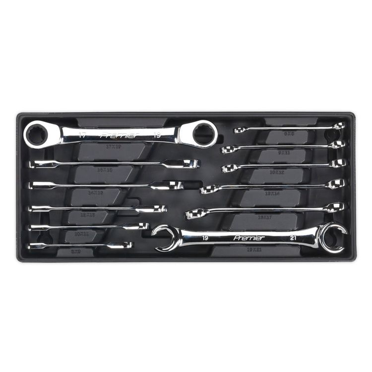 | Contents | Flare Nut Spanners; 6 x 8, 9 x 11, 10 x 12, 13 x 14, 15 x 17, 19 x 21mm, Ratchet Ring Spanners; 8 x 9, 10 x 11, 12 x 13, 14 x 15, 16 x 18, 17 x 19mm |