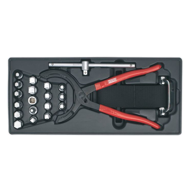 | Contents | Strap Wrench 3/8" & 1/2"Sq Drive, Pliers 54-108mm Capacity, 3/8"Sq Drive Drain Keys; Square Male; 7, 8, 10, 11, 12, 13, 14mm, 5/16", 3/8", Square Female; 10mm, Hex; 8, 9, 10, 12, 14, 17, Triangle; 10mm, TRX-Star*; T45, Tommy Bar 3/8"Sq Drive Sliding T-Bar |