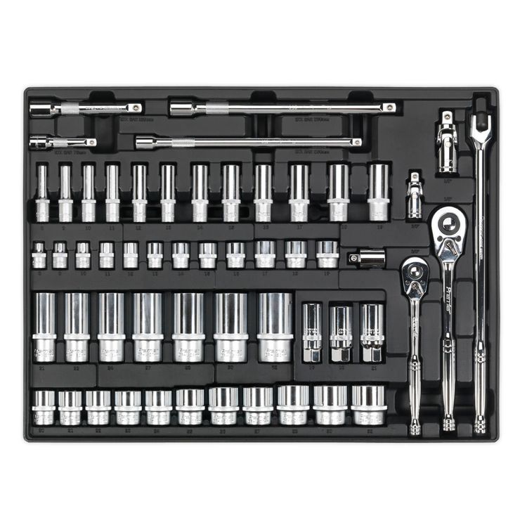 | Contents | 3/8"Sq Drive Sockets; 8, 9, 10, 11, 12, 13, 14, 15, 16, 17, 18, 19mm, 3/8"Sq Drive Deep Sockets; 8, 9, 10, 11, 12, 13, 14, 15, 16, 17, 18, 19mm, 1/2"Sq Drive Sockets; 20, 21, 22, 23, 24, 25, 26, 27, 28, 30, 32mm, 1/2"Sq Drive Deep Sockets; 21, 22, 24, 27, 28, 30, 32mm, Spark Plug Sockets; 16, 18, 21mm, 3/8"Sq Drive Flip Reverse Ratchet Wrench, 1/2"Sq Drive Flip Reverse Ratchet Wrench, Universal Joints; 3/8" & 1/2"Sq Drive, 3/8"Sq Drive Extension Bars; 75, 250mm, 1/2"Sq Drive Extension Bars; 125, 250mm, 380mm 1/2"Sq Drive Breaker Bar, 1/2"(F)-3/8"(M) Sliding T-Bar Adaptor |