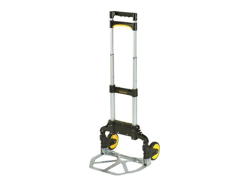 The STANLEY® SXWT-FT500 Folding Hand Truck has a compact and lightweight design making it easy to open and close for trouble-free transport and storage. Made of lightweight and durable Aluminium. Major plastic stress points are made of durable nylon; other plastic pieces are polypropylene. Equipped with a useful elastic cord stored on the back of the cart for added stability.