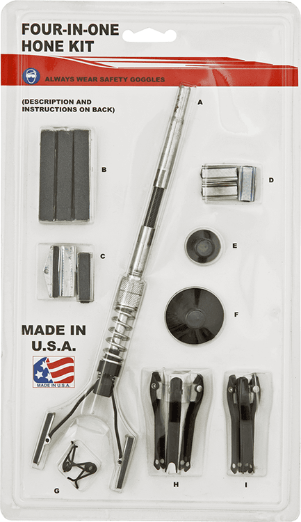 Brake Cylinder Hone for small cars: (5/8" - 2 1/4", 16 - 57 mm). Small collar. 2-leg assembly. 2 x 118" stones. Brake Cylinder Hone: (3/4" - 2 1/2", 19 - 64 mm). Medium collar. Medium 3-leg assembly. 3 x 118" stones. Disc Brake Cylinder Hone: (1 1/4" - 3 1/2", 32 - 89 mm). Large collar. Large 3-leg assembly. 3 x 3/4" stones. Small Engine Cylinder Hone: (1 1/4" - 3 1/2", 32 - 89 mm). Large collar. Large 3-leg assembly. 3 x 2" stones