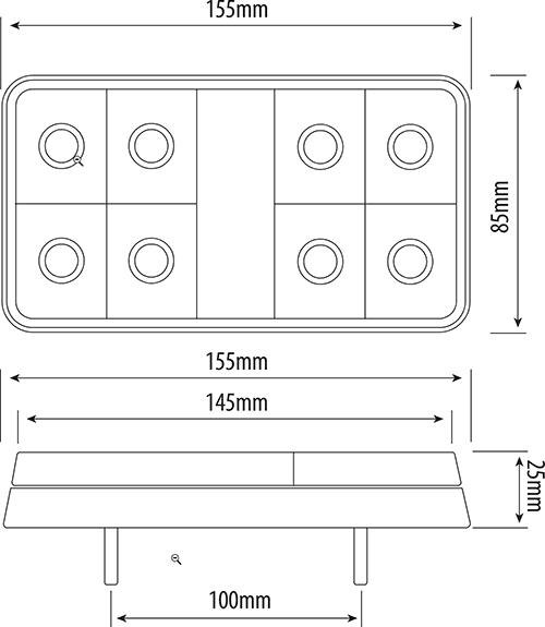 IP67. Base material: ABS. Lens material: Acrylic. Bolt mounting.
