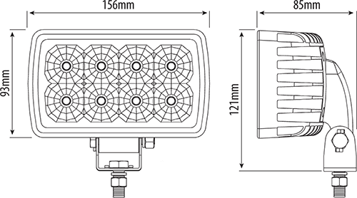 IP67. EMC approved. Housing: Aluminium. Lens: Acrylic. Stainless steel mounting bracket