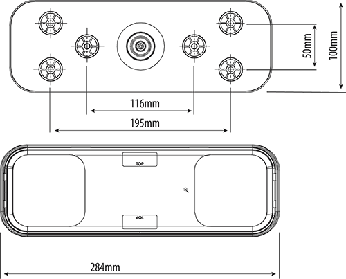 IP67. Base material: ABS housing. Lens material: Polycarbonate. Bolt mounting.