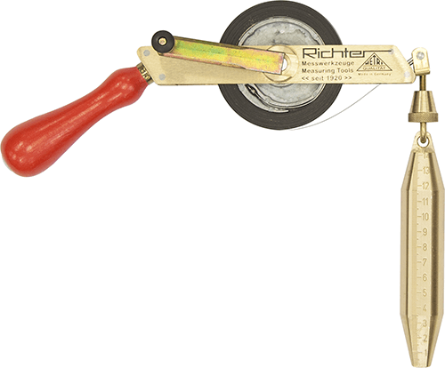 Mild steel tape graduated with raised markings, in mm. Complete with brass dipping weight.