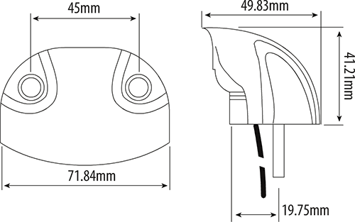 IP67. Base material: ABS housing. Lens material: Polycarbonate. Surface mount fixing.