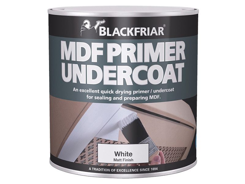 Blackfriar Quick Drying MDF is a primer and undercoat especially designed for use on MDF. It’s easy to use and dries quickly so you can prime, undercoat and finish all in one day. It can be overcoated with a choice of finishes including gloss, emulsion and satins.