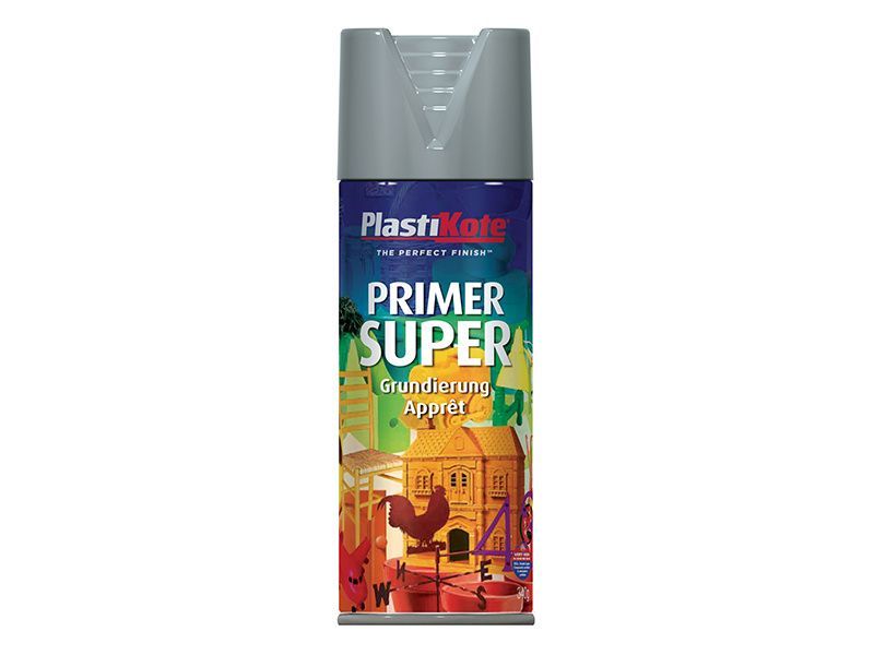 PlastiKote Super Primer Spray is ideal for many applications, both interior and exterior, and is suitable for use on wood or metal. It provides a preparatory coating that allows finishing paint to adhere much better than if it were used alone.