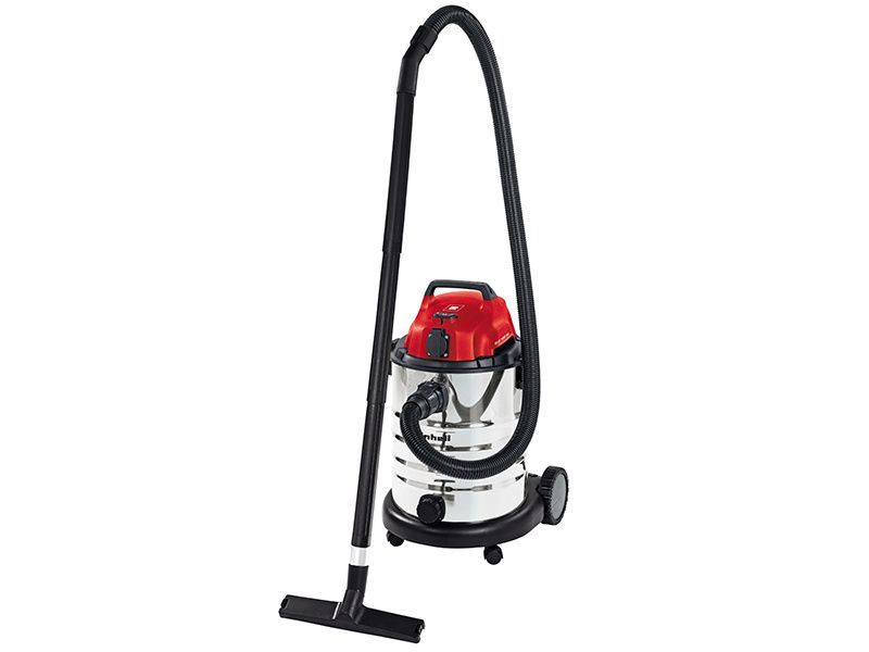 The Einhell TC-VC 1930 SA Wet & Dry Vacuum with power take off socket with an automatic function and delayed switch-off, so it can be used as a power source for a variety of different power tools. Its stainless steel tank has a capacity of 30 litres for both dirt and liquids, with a drain screw for the user-friendly and clean disposal of the vacuumed liquid. A practical blow connector is also provided.