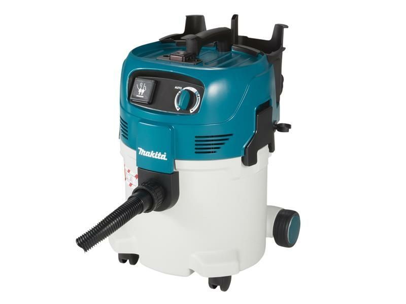 The Makita VC3012M Wet & Dry M-Class Dust Extractor will remove 99.9% of dust with a Limit Value for occupational exposure > 0.1 mg/m³. It is suitable for processes involving mica, china clay, gypsum, wood dust (softwood and hardwood) and silica dust. It uses a simple push and clean system and it takes just seconds to clean the filter. The washable PET cartridge filter protects the turbine by holding back fine dust and debris.