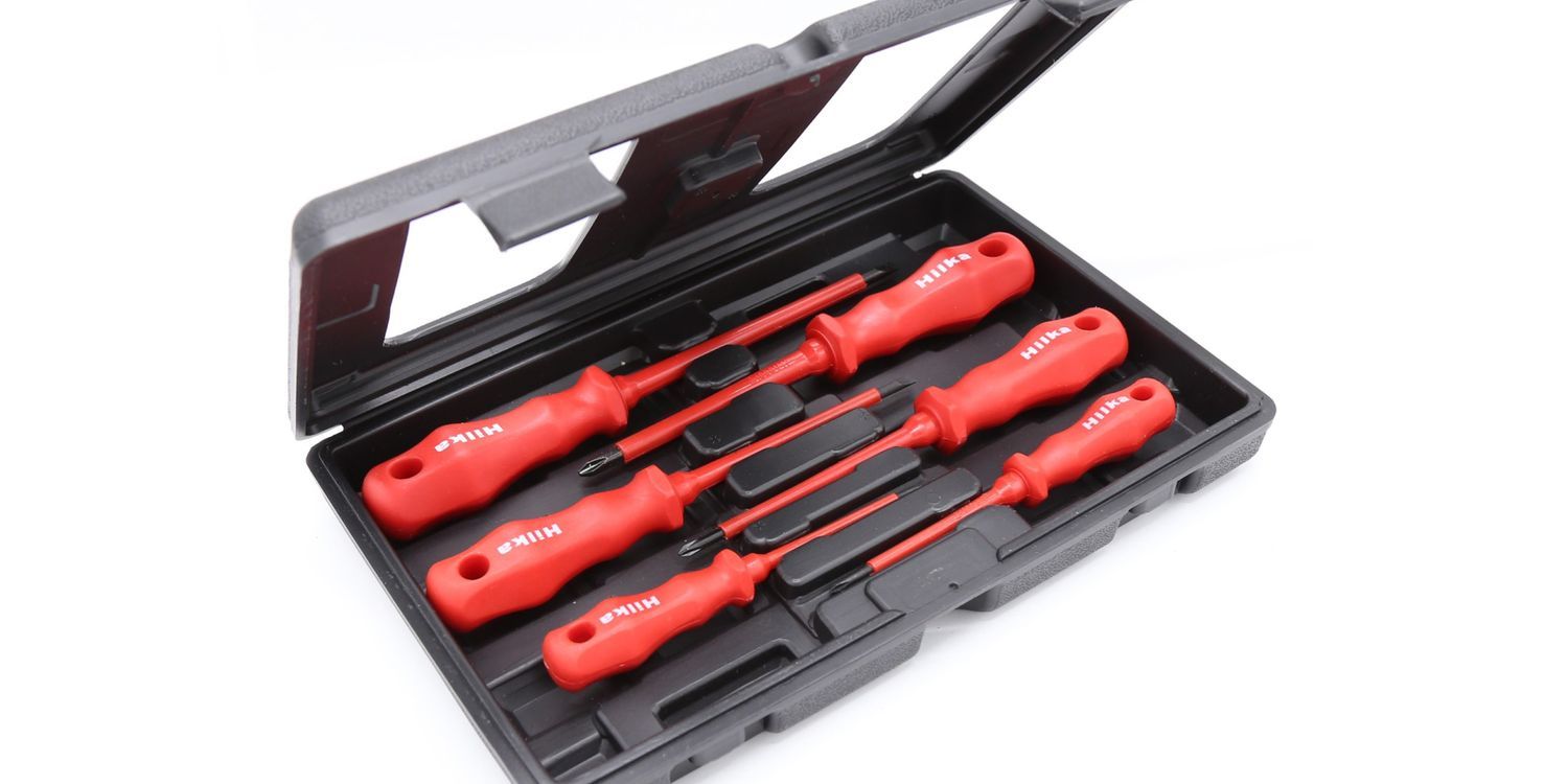 Fully insulated and tested to 1000 volt. Contents: 3" (75mm) x 2.5mm, 4" (100mm) x 4.0mm, 5" (125mm) x 5.5mm, 3" (75mm) x No 0, 4" (100mm) No 1 and No 2.