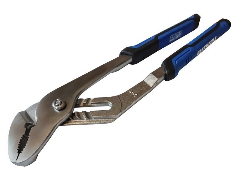 These Faithfull Water Pump Pliers are made from chrome vanadium steel with a rustproof, satin nickel finish and fitted with cushion grip sleeves for user comfort. Ideal for gripping pipes, nuts and bolts. A quick-action, sliding pivot provides a wide range of jaw settings. The offset jaws are angled to ensure a positive action with extra power when leverage and grip are applied.