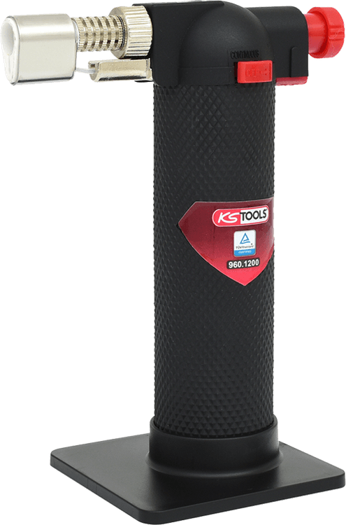 Flame soldering burner with small bundled flamer for fine soldering work.