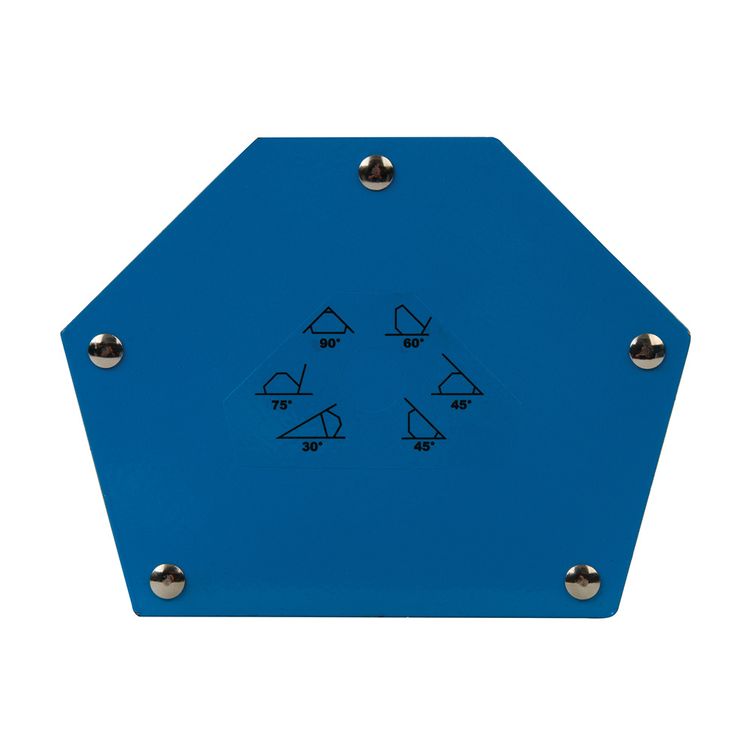 Powerful welding magnet for holding steel parts in place at 30°, 45°, 60°, 75° and 90°. Frees hands for work. Use for welding, soldering, assembly marking off and pipe installation.