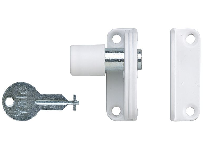 The Yale P123 sash window presslock is in a white finish, the lock incorporating a pressbolt preventing the inner and outer frames of the sash window from passing each other so giving added security and protection to your home.