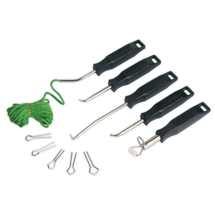 Install windscreens with ease with this complete tool kit from Sealey. The Sealey WK2 Windscreen Installation Tool Kit includes tools with reinforced composite handles with heat-treated, chromed steel shafts for extra durability. This tool kit is specially designed for the installation of rubbered screens including commercial vehicle screens and includes handy hanging holes in the handles for ease of storage.