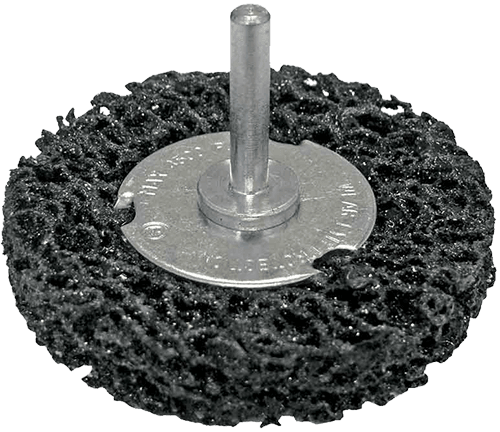Enables effective removal of rust, paint, thermal blueing and other contaminants. For use on electric drills or air tools.