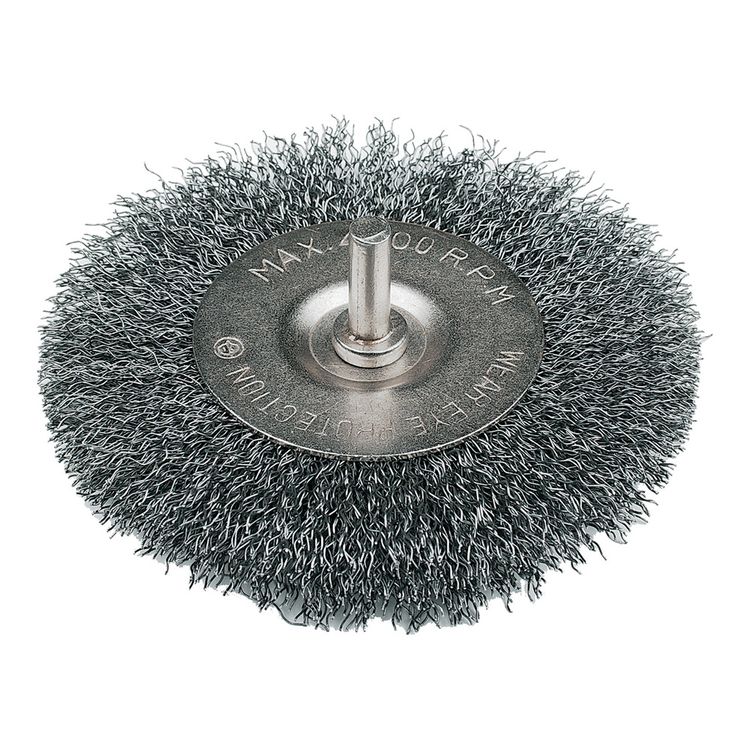 High tensile steel wire, 0.3mm diameter, for rust and paint removal, descaling, deburring and preparation of welding seams. For metal and stone working, cleaning, surface preparation and fabrication tasks. Use with power drills. 6mm shank.