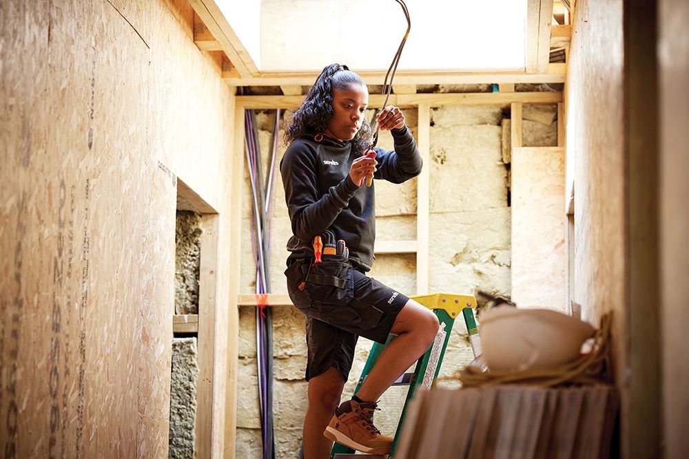 Flexible waistband for added comfort. Features easy access holster pockets, cargo pocket, mobile phone pocket. Tool loops, hammer loop and D-ring for tool and accessory storage. Abrasion-resistant Abratect™ reinforcements. 65% recycled polyester, 35% cotton.