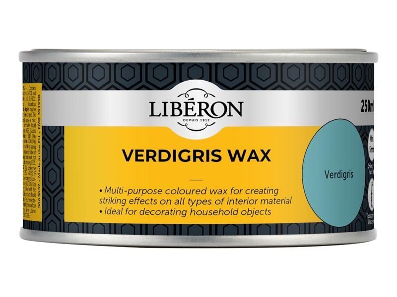 Liberon Verdigris Wax is a multi-purpose coloured wax for creating striking effects on all types of interior material such as wood, metal, stone, plastic and plaster. Recommended as a special effects wax, it gives green hues of oxidized copper and brass and can be worked into moulding, bronzes, papier-mache, alabaster and carvings. Ideal for decorating household objects, it buffs to a soft sheen, and can also be applied as a wax finish to bare or coloured wood.
