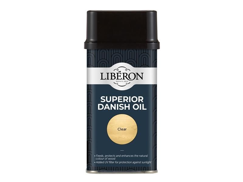 Liberon Superior Danish Oil is a blend of pure tung oil and natural oils which protect hard and soft woods. It brings out the natural grain of the timber and provides a satin to gloss sheen. With added UV filters to help prevent discolouration, it is suitable for interior and exterior use.