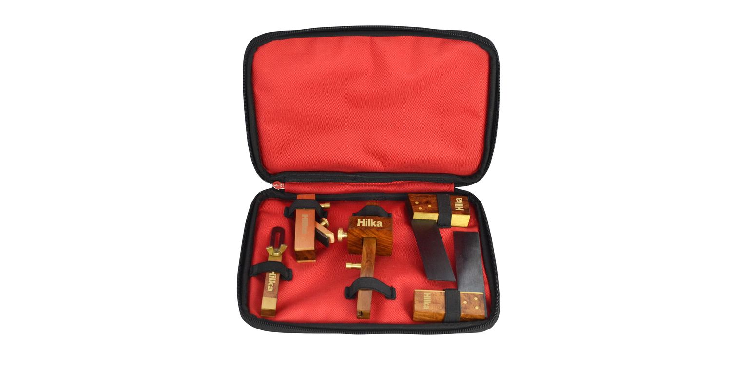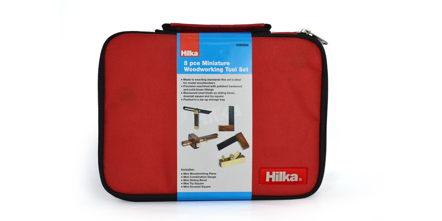 Made to exacting standards this set is ideal for model woodworkers. Precision machined with polished hardwood and solid brass fittings. Packed in a zip-up storage bag for easy safekeeping and storage. Containers: mini woodworking plane, mini combination gauge, mini sliding bevel, mini dovetail square and mini try square with blackened steel blades.
