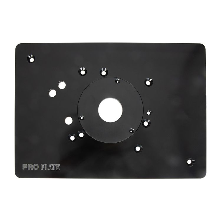 Solid aluminium router insert plate for home and professional use. Makes lifting router from table more convenient for comfortable bit changes, height adjustments and maintenance. Allows easier freehand and guided edge work. Includes router plate, insert ring ID 38 x OD 102mm (1-1/2" x 4"), 2 x plate locking bolts, pattern routing pin and hardware pack. Compatible with Triton routers JOF, MOF and TRA. 6mm (1/4") thick. Plate measures 210 x 298mm (8-1/4 x 11-3/4"). Accepts additional inserts for multiple size openings.