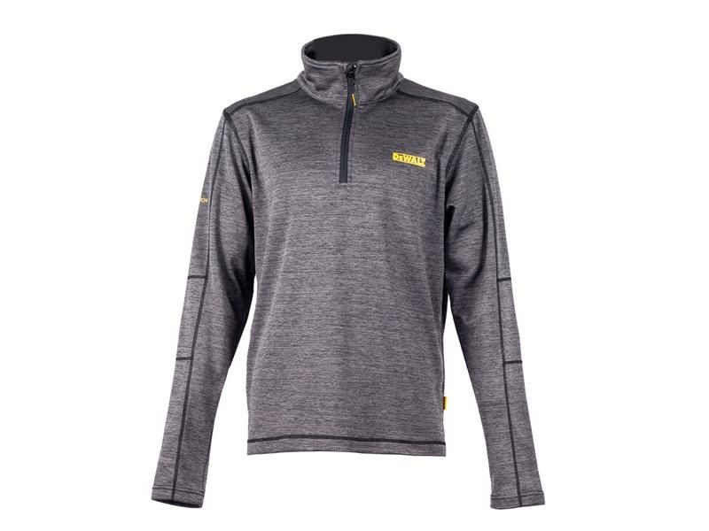 The DEWALT Jonesborough 1/4in Zip Mid-Layer Fleece is made from stretch polyester with grid fleece backing. With a tonal cover stitch construction. It also features a funnel neck collar and Pro Stretch logo.