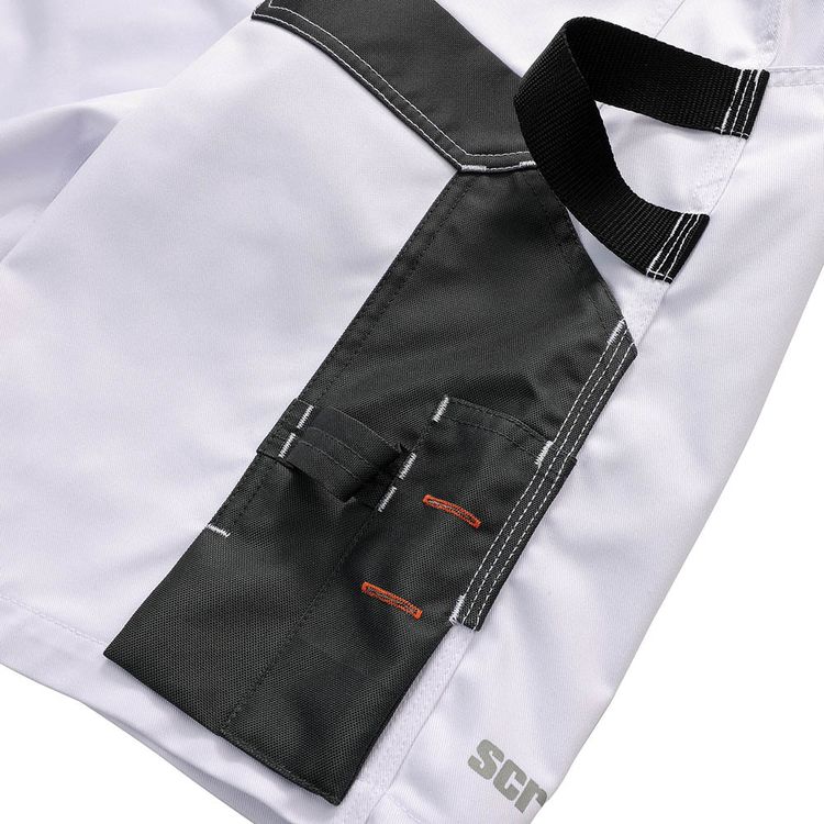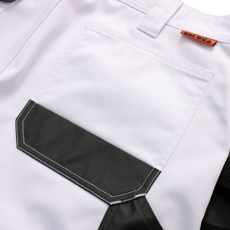 Sustainably sourced, lightweight and durable fabric for all-day comfort and performance. Hard wearing Abratect™ fabric pocket reinforcements and triple-stitched seams. Features holster pockets, cargo pocket, rule pocket, multi-tool pocket, hammer loop and D-ring for tool and accessory storage. 64% recycled polyester, 33% cotton, 3% elastane, 250gsm.