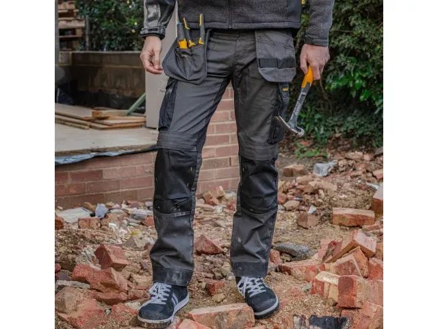 STANLEY® Austin Stretch Holster Pocket Trousers with a slim fit. They feature a variety of pockets, ideal for workers on the go. Including holster pockets, cargo pockets and a padded phone pocket. Made from durable 600D nylon fabric with reinforced knee pad pockets and hem.